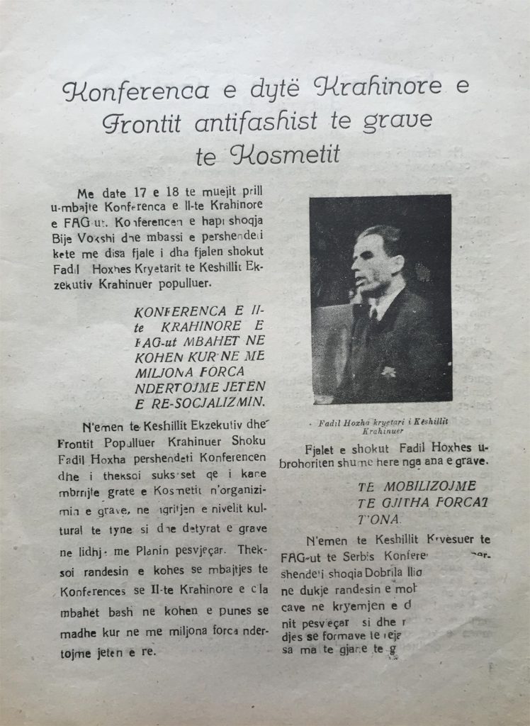 Në këtë kontekst represioni e dhune shtetnore, zhvilloi aktivitetin tutje Fronti Antifashist i Grave të Kosovës dhe Metohisë, siç fillimisht quhej, e ma vonë i njohun vetëm si Fronti Antifashist i Grave, FAG.